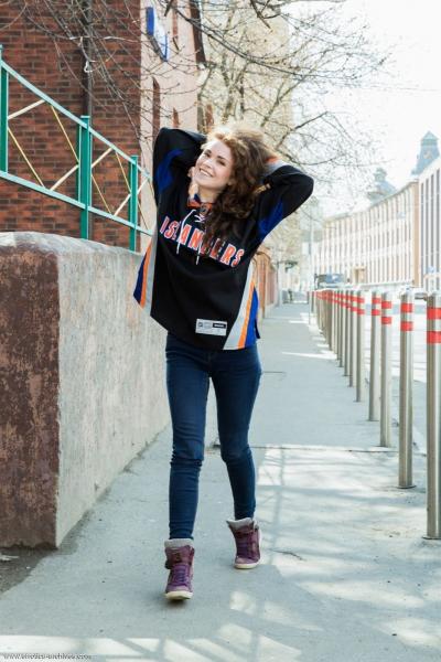 Гуляя по улицам, молодая красотка из Словении Estelle пристально смотрела по сторонам, эротично подмигивала незнакомым мужчинам и передавала воздушные поцелуи. Шикарная попа девушки хоть и была прикрыта штанами, все же выглядела красиво и очень эротично. Потрогав и потеребив пальцами соски, разгоряченная цыпочка помчалась домой. Войдя в спальню, заводная шкура медленно обнажилась и принялась проветривать вареник. Девушка без трусиков шалила хоть и не очень долго, все же парню все очень понравилось. Проветрив дырку, шалунишка с красивыми натуральными сиськами побрела в спальню.