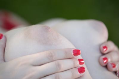 Прикрыв обнаженное тело короткой ночнушкой, молодая очаровательная жительница Словакии вышла в сад и начала заигрывать с привлекательным соседом. Игриво одергивая наряд, брюнетка показывала шикарную попу и при этом постоянно щупала пальцами слегка напряженные бедра. Осмелев, девица обнажилась, продемонстрировала голую грудь, далее проказница с яркими ногтями улеглась на небольшой стол. Положив руки на красивые натуральные титьки, леди закатила глаза и принялась массировать сосочки. Уличный стриптиз доставил массу радости не только зрителю, но и самой барышне.
