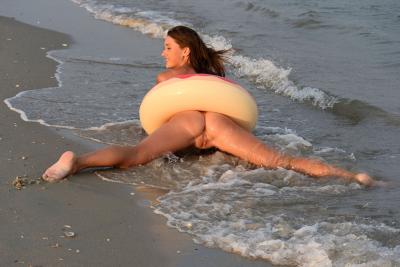 Желая привлечь к себе как можно больше мужского и женского внимания, черноволосая туристка разделась на пляже и принялась активно сверкать голой жопой. Обнаженная телочка вначале просто разгуливалась по берегу, затем натянула спасательный круг и помчалась в море. Ополоснувшись в прохладной воде, шаловливая деваха Shannon принялась занимать непристойные позы перед совершенно незнакомыми зрителями. Улыбаясь во весь рот, брюнетка показывала груди и поглаживала крупные коричневые сосочки. Вскоре похотливая шкура улеглась на живот и раскинула ноги и дала взглянуть на напряженную письку.