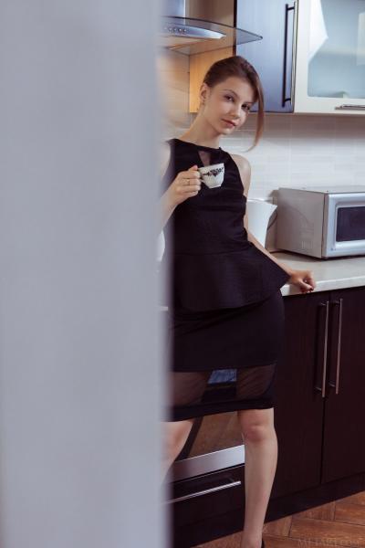 Молодая красавица оголилась дома на кухне