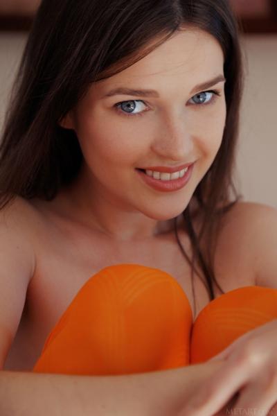 Нежная брюнетка сняла оранжевые колготки дома