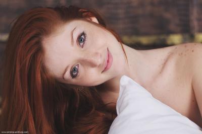 На откровенных фото обнаженная рыжая девчонка Michelle H охотно показывает классную попку. Обернувшись, развратная милочка потрогала голые груди и начала поглаживать пальцами упругие сосочки. Отменная эротика придется по вкусу всем любителям прекрасного. Молодуха с выбритым лобком вскоре прижала белую подушку к розочке и принялась сексуально отрываться. Делая невинное лицо, рыжеволосая девушка без одежды подмигивала оператору и улыбалась. Голубые женские глаза, приятная мордашки и аппетитные формы позабавят многих любителей прекрасного. Ощупав сисечки, прыткая дама стала скромно прикрывать нагое тело одеялом.