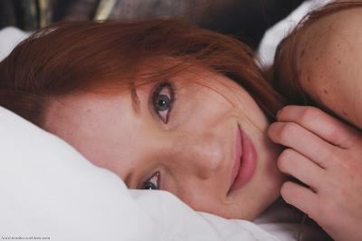 Рыжеволосая очаровашка голышом в белой постели