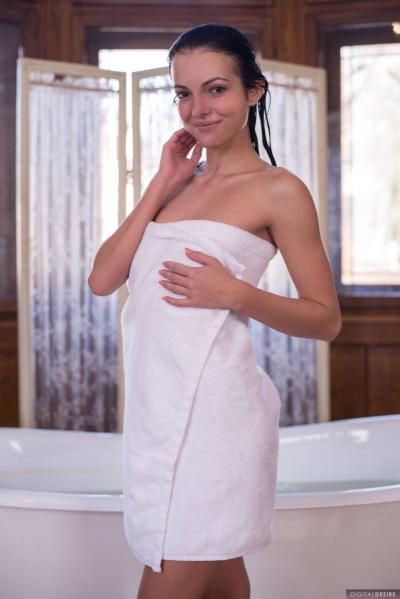 Забравшись в пенную ванную, худая Sapphira A медленно стягивает эротичный прикид и игриво тискает титьки первого размера. Сосочки моментально напрягают, а пися начинает выглядеть еще более аппетитнее. Ополоснувшись, барышня занимает очень откровенную позу, в которой ее попочка смотрится прекрасно. Поглаживая мокрые интимные места, худенькая жительница Чехии берет в руки белое махровое полотенце и обматывает щуплое тельце.