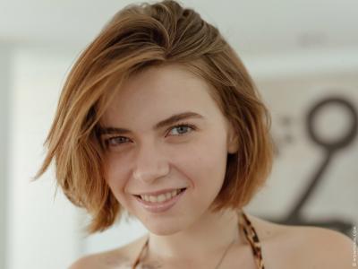 Грудастая ню модель из России Marina Visconti любит показывать голое тело перед объективами фотокамер. На откровенных снимках можно увидеть как приятная женщина медленно стягивает лифчик, далее стаскивает белые трусы. Задорно поглаживая выбритую пилотку, пылкая шалунья активно трясет натуральными титьками и при этом улыбается. Перебравшись на просторный пуфик, неженка в туфлях на высоком каблуке начала широко разводить ноги. В данной откровенной позе бородатый оператор смог не только рассмотреть женскую щель во всей красе, но и также сделал немалое количество снимков с широкими бедрами.
