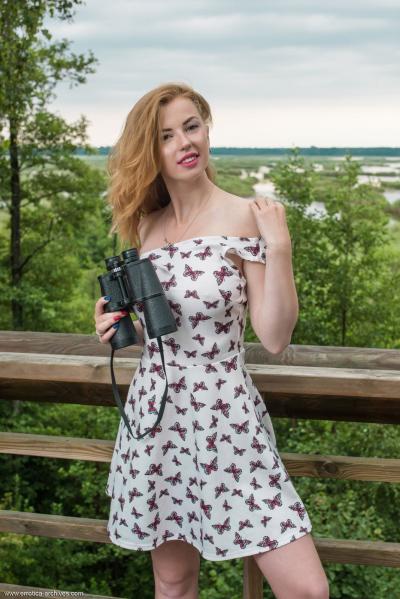 Взяв в руки бинокль, романтичная шведка в коротком платье стала осматривать окрестности. Прогулка по даче быстро взбодрила и возбудила красотку с толстой жопой и классными сиськами. Делая невинное лицо, эротичная Helene разделась. Интимная стрижка и голая жопа еще сильнее завели пухлую милочку. Приблизившись к деревянной перилле, обнаженная нимфоманка с русыми волосами и упругими сиськами развела ноги и прикоснулась к волосатой письке.
