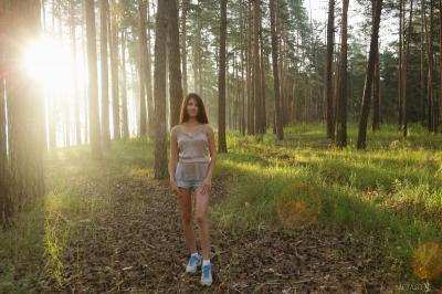 Забив на сбор грибов, приятная городская чикуля с упругими титьками принялась обнажаться прямо в лесу. Стянув майку и короткие шорты, голая девушка развела ноги и приступила проветривать напряженную писюху, от которой исходили ароматные запахи. Наслаждаясь закатом, милочка сексуально поглаживает слегка напряженную попку и при этом загадочно улыбается. Пошалив так некоторое время, привлекательная студентка Melisia неторопливо оделась и побрела к дороге, где был припаркован автомобиль.