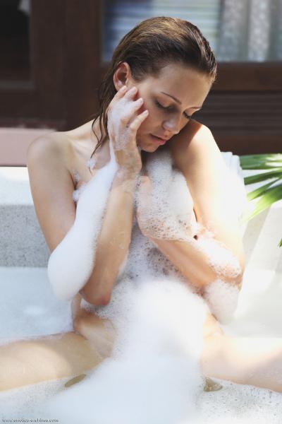 Милая украинка Oliana наполнила небольшой бассейн тепловой водой, влила в жидкость флакон с шампунем и начала массировать сисечки, которые были весьма упругими и красивыми. Ополоснув буфера, голая хохлушка встала на четвереньки и показала не только румяный попец, но и то как же сильно напряжена розовая щелка. Стриптиз в пене впечатлил садовника, а также многих соседей. Ополоснувшись, голая нимфоманка насухо вытерлась и стала нюхать белый цветок. Передав счастливой публике нежный воздушный поцелуй, черноволосая бабенка с голой жопой принялась эротично бегать по просторному двору.